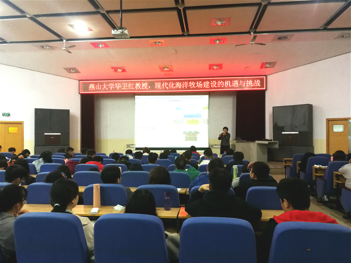 2019年10月29日下午,燕山大学信息科学与工程学院教授、河北省特种光纤与光纤传感重点实验室主任毕卫红教授应正规滚球app平台官网邀请在昌黎校区学术报告厅作了题为《现代化海洋牧场建设的机遇与挑战》的报告。正规滚球app平台官网电子信息工程专业全体学生和部分老师聆听了报告。正规滚球app平台官网王枫博士主持了报告会。