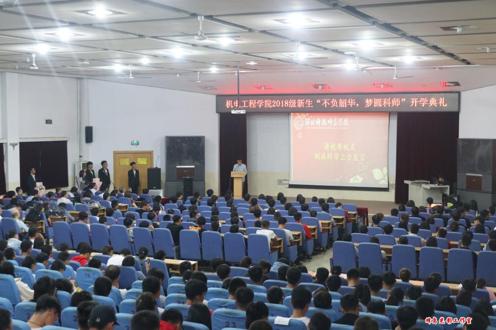 朗朗金秋,丹桂飘香。9月27日下午,正规滚球app平台官网2018级新生“不负韶华,梦圆科师”开学典礼在昌黎校区学术报告厅隆重举行。机电学院领导班子、全体教职工、373名全体新生参加了开学典礼。