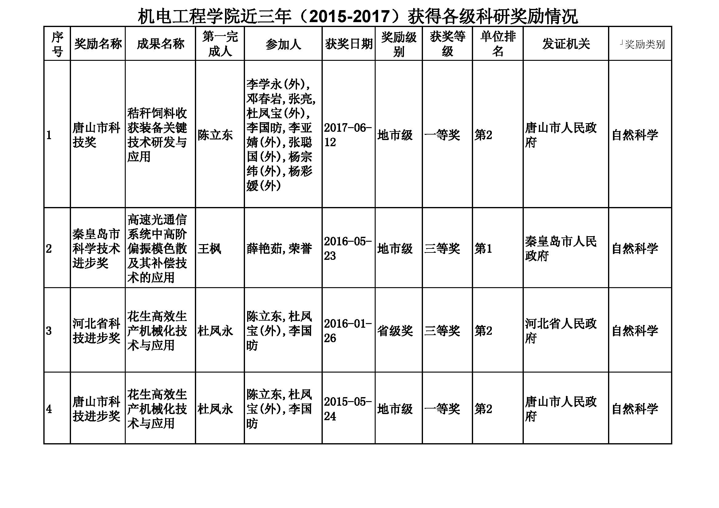 正规滚球app平台官网近三年(2015-2017)获得各级科研奖励情况