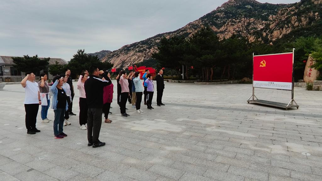 在五峰山脚下革命先烈李大钊的“铁肩担道义”巨像前,全体党员佩戴党徽、庄严站立,重温入党誓词。随后,大家沿着蜿蜒的山路,踏寻革命先烈李大钊足迹,登临五峰山,实地参观五峰山李大钊故居、革命活动旧址展陈室、了解李大钊同志开展革命活动的事迹。大家还共同领略了五峰山浓郁的历史人文气息。