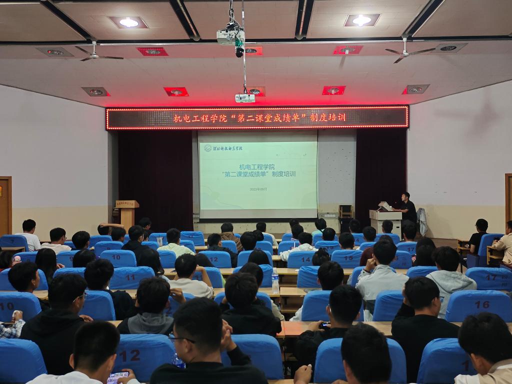 按照学校团委安排部署,2023年9月26日晚,机电工程学院在昌黎校区学术报告厅召开“第二课堂成绩单”制度培训会,2023级本科生参加此次培训会。