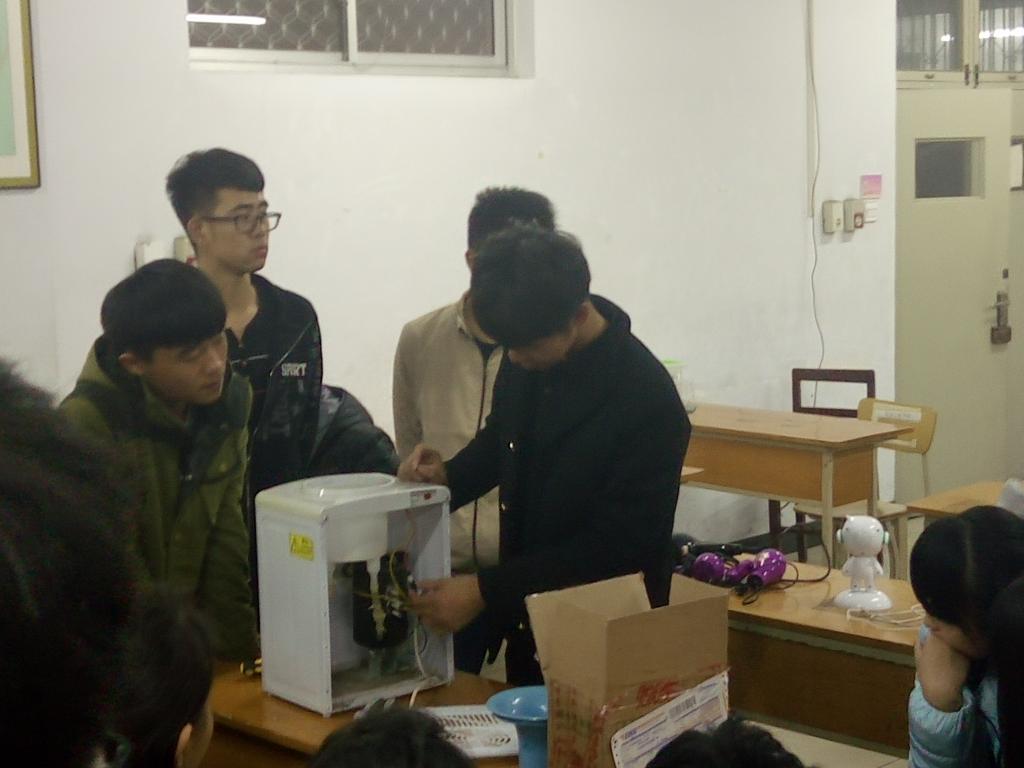 同学们积极争做社会实践型的实用好青年发扬青春正能量,在瑟瑟的寒风中,不怕脏不怕累毫不抱怨的对这些用电器进行“抢修”,引领了校园好风尚。