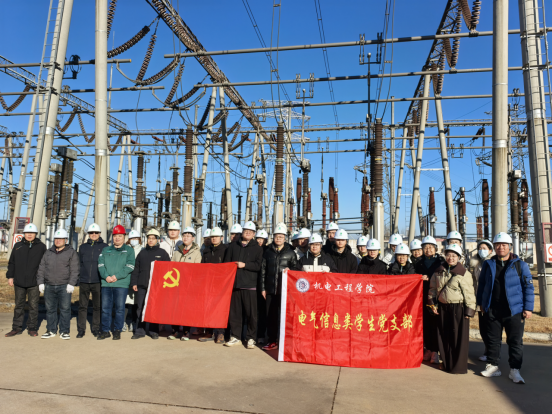 本次活动旨在深入推进党建与专业教育深度融合,提高学生理论联系实际的能力,激发青年学生的使命担当,将课堂知识与生产一线相结合,让党旗在实践一线阵地上高高飘扬。师生们先后来到龙家店220kV与马铁庄110kV两个变电站,在严格遵守安全规程的前提下,有序参观了变电站的主控室、高压设备区、变压器及配电装置等核心区域。变电站技术人员结合现场设备,从变电原理、设备运行维护、安全自动装置等,进行了深入浅出的讲解,为师生们上了一堂生动的“现场课”。此次变电站之行,实现了从书本理论到现场实景的跨越,它不仅是一堂生动的专业认知实践课,更是一堂深刻的党性教育课。它成功地将思想政治教育融入专业实践中,让学生坚定了理想信念,明确了学习目标和职业规划。