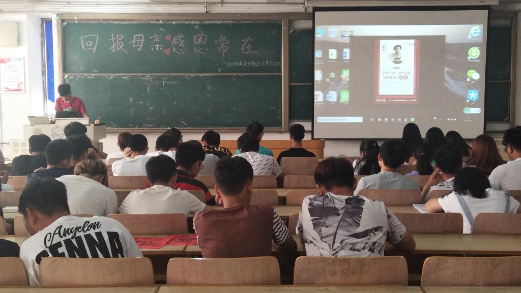 2018年5月13日上午11时,17级机械设计制造及其自动化团支部于主楼B105举办以“回报母亲,感恩常在”为主题的团日活动,本次活动由17级机制全体同学参加。