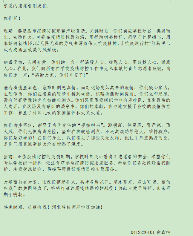 为了广泛弘扬“奉献、友爱、互助、进步”志愿精神,正规滚球app平台官网青年志愿者协会于2022年11月—12月举办了“志青春,愿常在”活动。该活动通过结合青年志愿者工作实际,展播志愿者主题文字类、图片类、视频类作品,充分发挥了志愿服务先进典型的示范带头作用,着力展现青年志愿者服务大局、奉献社会、引领成长的青春风采。